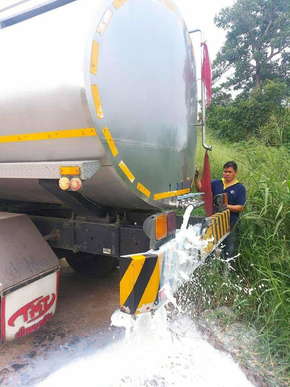 មជ្ឈមណ្ឌលប្រមូលទិញទឹកដោះគោ បានបង្ហូរទឹកដោះគោទៅក្នុងវាលស្រែ ដើម្បីផ្ទុកទឹកដោះថ្មីពីសមាជិកជារៀងរាល់ថ្ងៃ។